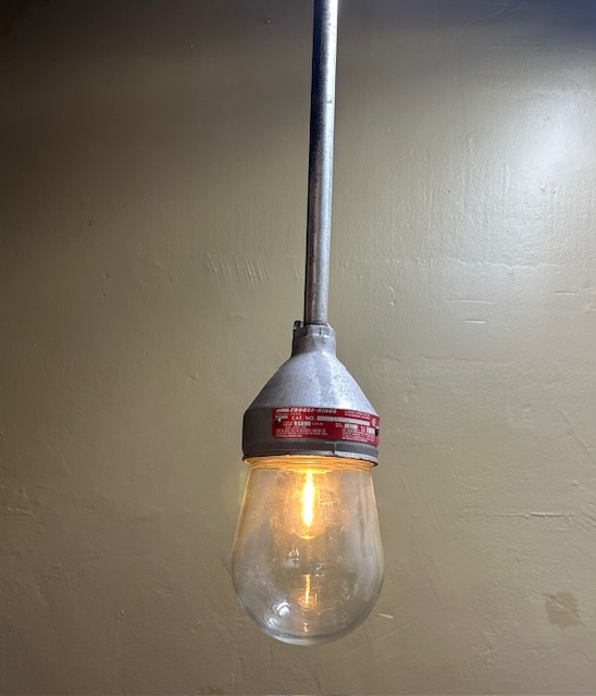 We have several of these Crouse and Hinds pendant lights at the moment. These have a great look and are very versatile. Perfect for over a kitchen island or in a restaraunt. We also have several mounting options which include wall mounting to create a sconce. Please call for current quantities.