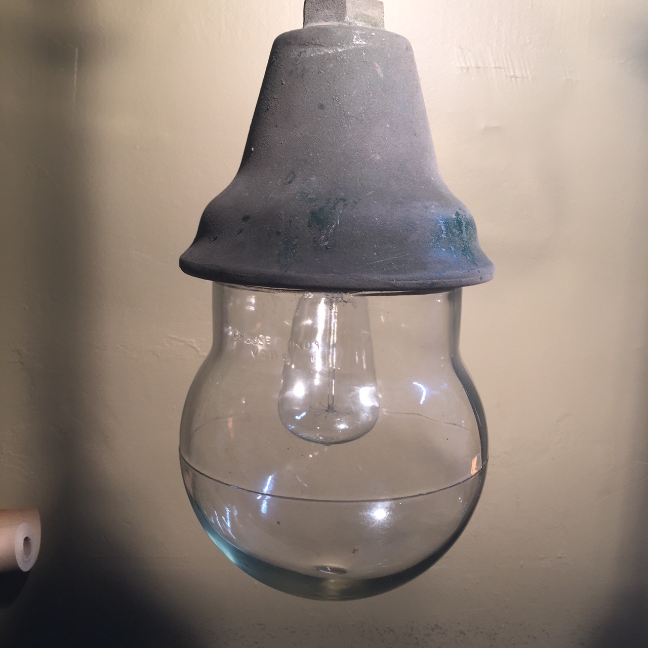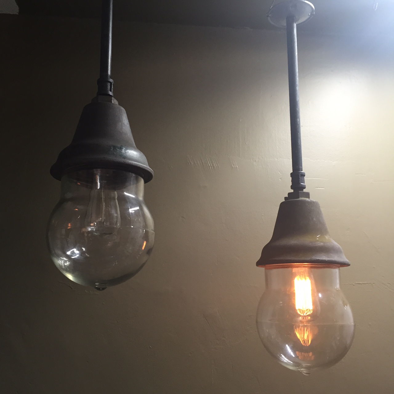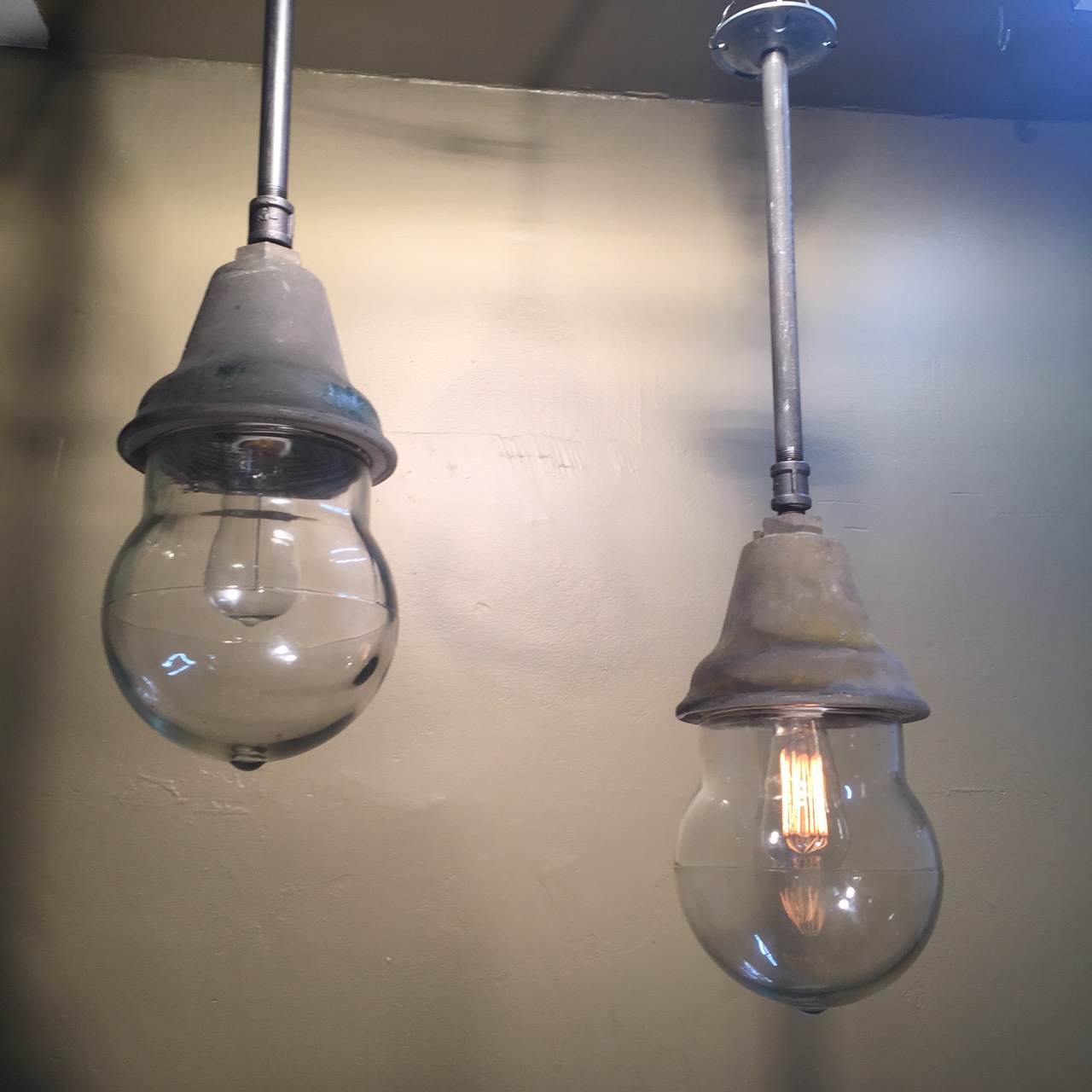 Vintage Crouse & Hinds Industrial pendant in excellent condition. We have three available at the moment. The optic glass lense looks great when lit especially when using a vintage style filament bulb. We can adjust the drop to suit your needs.